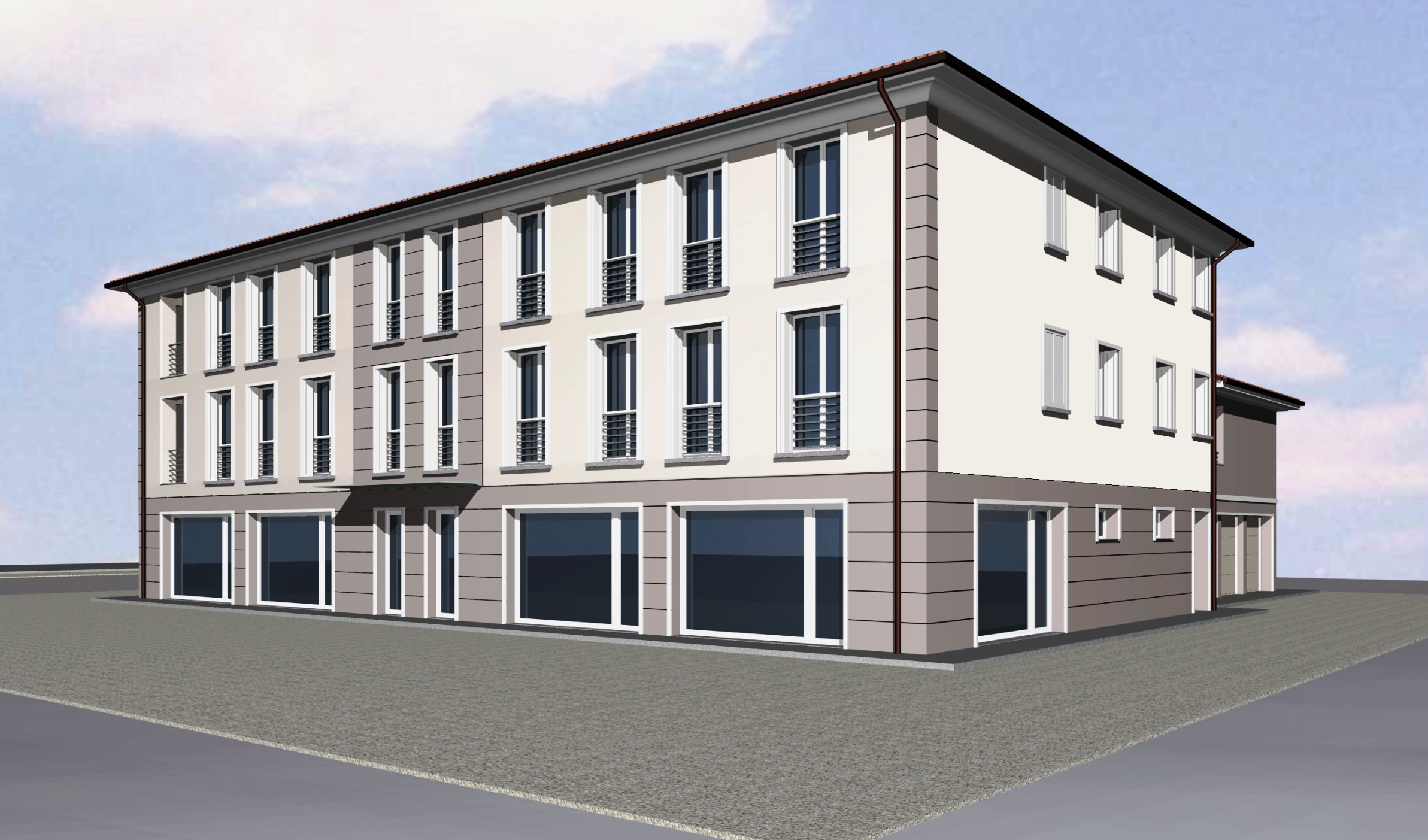 Progetto di ricostruzione di immobile residenziale commerciale, composto da due negozi, un ristorante con B&B ed 8 alloggi.